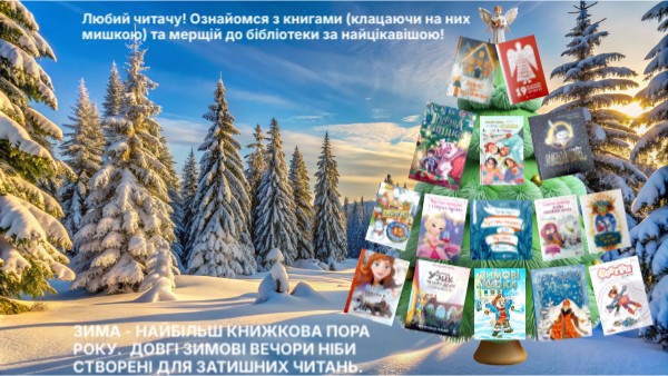 ЗИМА - НАЙБІЛЬШ КНИЖКОВА ПОРА РОКУ. ДОВГІ ЗИМОВІ ВЕЧОРИ НІБИ СТВОРЕНІ ДЛЯ ЗАТИШНИХ ЧИТАНЬ.