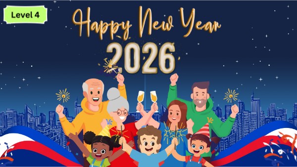 "Happy New Year!" they all shouted as they watched the fireworks sparkle in the sky.