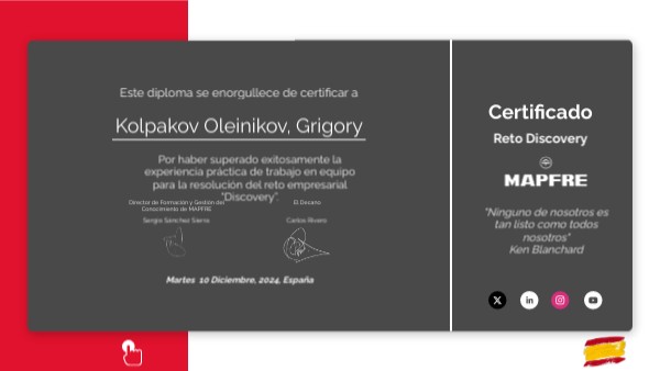 Por haber superado exitosamente la experiencia práctica de trabajo en equipo para la resolución del reto empresarial “Discovery”.