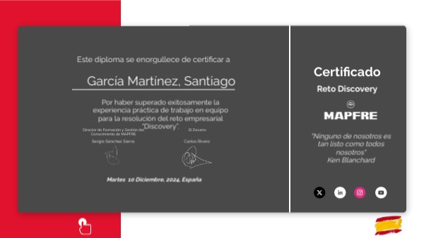 Por haber superado exitosamente la experiencia práctica de trabajo en equipo para la resolución del reto empresarial “Discovery”.