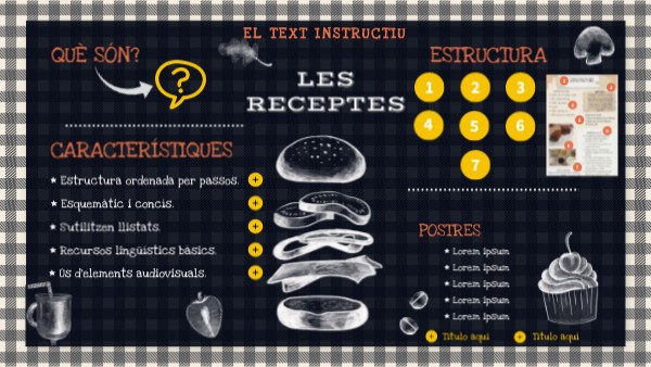 Una recepta de cuina és un conjunt d’instruccions que descriuen de forma ordenada un procediment culinari. Per tant, les receptes són un tipus de text instructiu.