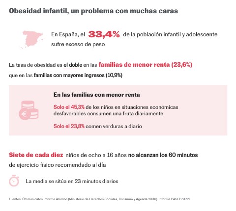 Solo el 45,3% de los niños en situaciones económicas desfavorables consumen una fruta diariamente Solo el 23,8% comen verduras a diario