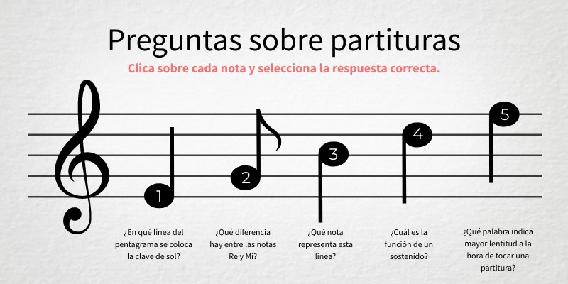 Clica sobre cada nota y selecciona la respuesta correcta.