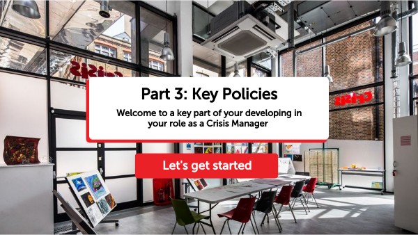Welcome to a key part of your developing in your role as a Crisis Manager