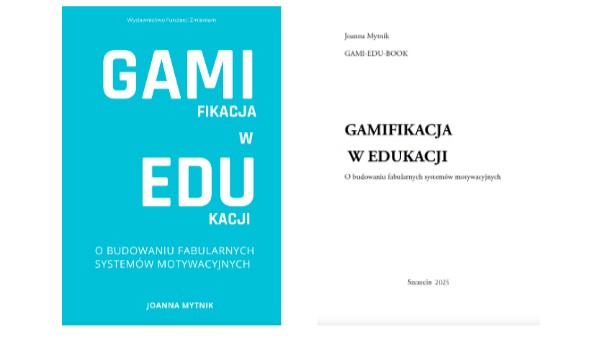 Joanna Mytnik "Gamifikacja w edukacji. O budowaniu fabularnych systemów motywacyjnych". Wydawnictwo Fundacji Zmieniam. Szczecin 2024. ISBN druk: 978-83-971909-4-8 | ISBN pdf: 978-83-971909-5-5. Więcej na stronie: https://www.joannamytnik.com.pl/gamifikacja