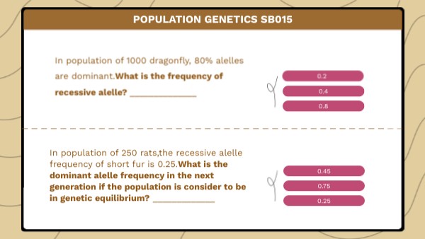 We students from S3K2T1 already create one game to helping you guys to be more understanding in "SB015 CHAPTER 5 POPULATION GENETICS" topics How to play? You can choose 1 of 3 options that been provided to answer the questions given by click it on the option.
