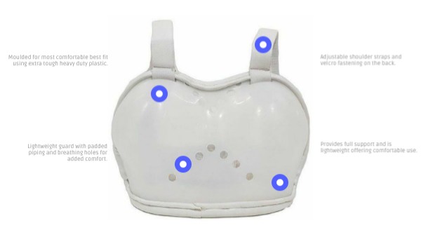 Lightweight guard with padded piping and breathing holes for added comfort.