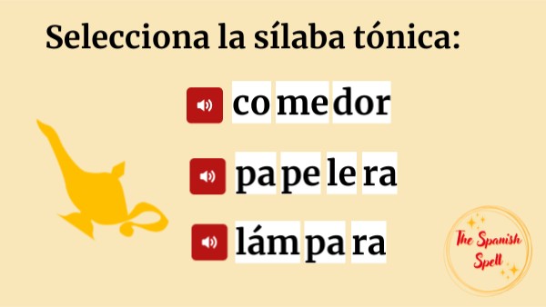 Selecciona la sílaba tónica de estas palabras.
