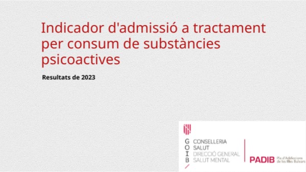El 2023 es van registrar a les Illes Balears 2.547 admissions a tractament per abús o dependència de substàncies psicoactives (1929 homes i 618 dones). Aquestes dades suposen un augment del 20 % respecte l’any anterior i d’un 43% respecte l’any 2020, superant xifres anteriors a la pandèmia