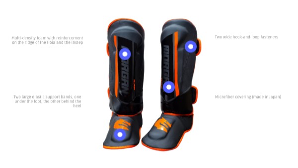 Multi-density foam with reinforcement on the ridge of the tibia and the instep