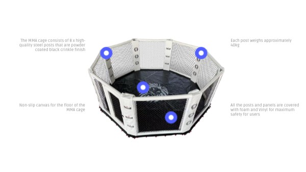 The MMA cage consists of 8 x high-quality steel posts that are powder coated black crinkle finish