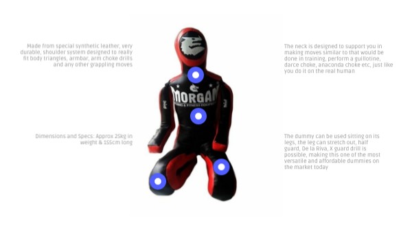 The dummy can be used sitting on its legs, the leg can stretch out, half guard, De la Riva, X guard drill is possible, making this one of the most versatile and affordable dummies on the market today