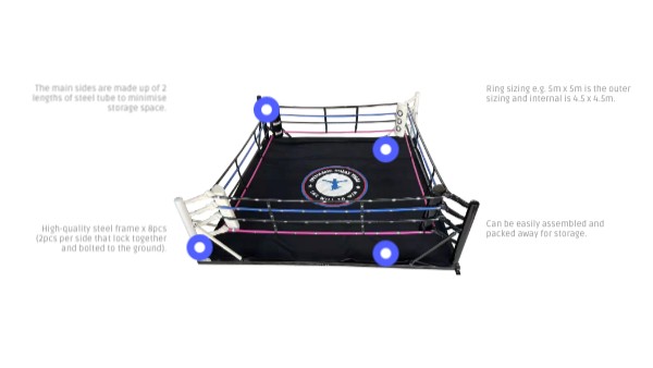 Ring sizing e.g. 5m x 5m is the outer sizing and internal is 4.5 x 4.5m.