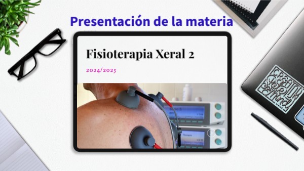 Esta materia es una materia obligatoria del 2º curso del Título de Grado de Fisioterapia (se imparte en el 2º cuatrimestre). En ella se estudia el uso terapéutico de las corrientes eléctricas, los ultrasonidos, la luz, el magnetismo y sus modalidades. Debido a sus contenidos, es importante tener conocimientos previos sobre anatomía, fisiología, biofísica y anatomía palpatoria.