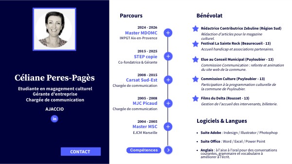 Etudiante en magagement culturel Gérante d'entreprise Chargée de communication