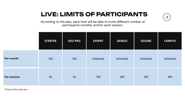 According to the plan, each host will be able to invite different number of participants monthly and for each session.