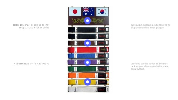 Sections can be added to the belt rack as you obtain new belts via a hook system