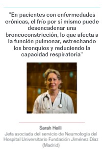 "En pacientes con enfermedades crónicas, el frío por sí mismo puede desencadenar una broncoconstricción, lo que afecta a la función pulmonar, estrechando los bronquios y reduciendo la capacidad respiratoria"
