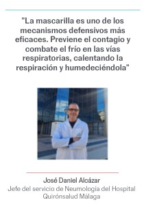 "La mascarilla es uno de los mecanismos defensivos más eficaces. Previene el contagio y combate el frío en las vías respiratorias, calentando la respiración y humedeciéndola"