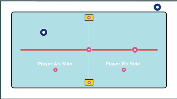 The table is divided into two halves, with each side belonging to a player or team. Players must keep the ball within their opponent's side of the table. These areas are used for legal serves, returns, and rallies during gameplay.