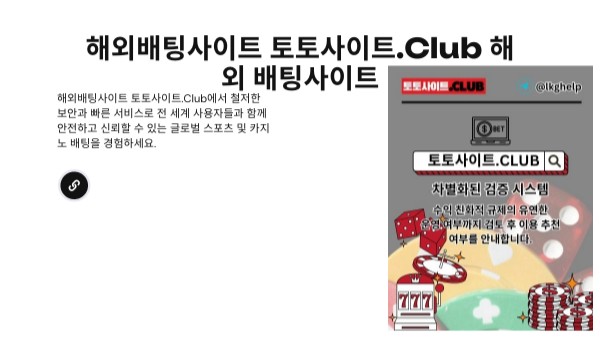 해외배팅사이트 토토사이트.Club에서 철저한 보안과 빠른 서비스로 전 세계 사용자들과 함께 안전하고 신뢰할 수 있는 글로벌 스포츠 및 카지노 배팅을 경험하세요.