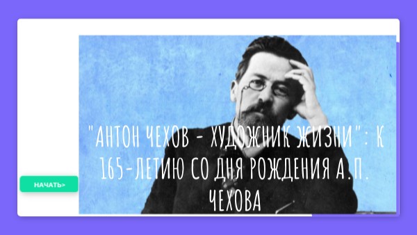 "АНТОН ЧЕХОВ - ХУДОЖНИК ЖИЗНИ": К 165-ЛЕТИЮ СО ДНЯ РОЖДЕНИЯ а.п. ЧЕХОВА