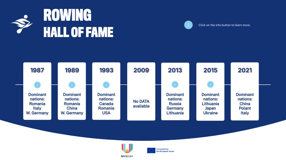 - Gold at 1989 Duisburg Single sculls