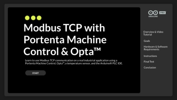 Learn to use Modbus TCP communication on a real industrial application using a Portenta Machine Control, Opta™, a temperature sensor, and the Arduino® PLC IDE.