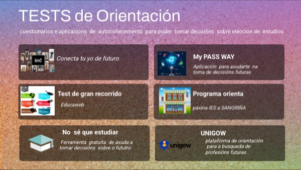 cuestionarios e aplicacións de autocoñecemento para poder tomar decisións sobre elección de estudios