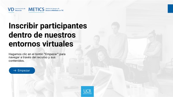 Si usted o la persona que creó el entorno lo configuró correctamente de acuerdo a los datos de la Guía de horarios del ciclo (sede, recinto, sigla, ciclo y número de grupo), las personas estudiantes que realizaron matrícula ordinaria irán apareciendo una a una en el entorno virtual a como vayan ingresando al espacio del curso. Por lo tanto, no es necesario matricularles manualmente. Para propiciar que ingresen al entorno lo antes posible, envíe un correo de bienvenida con un saludo, el nombre del curso y el enlace de ingreso. Además aclare en cuál plataforma está el curso.