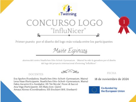 alumna del centro Staatliches Otto-Schott-Gymnasium, (Mainz) ha sido la ganadora por el diseño del logo del proyecto internacional eTwinning "InfluNicer" .