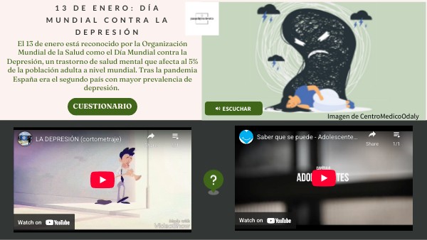 El 13 de enero está reconocido por la Organización Mundial de la Salud como el Día Mundial contra la Depresión, un trastorno de salud mental que afecta al 5% de la población adulta a nivel mundial. Tras la pandemia España era el segundo país con mayor prevalencia de depresión.