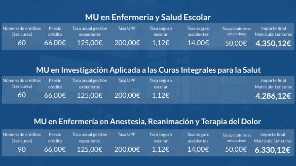 Total Preus MASTERS UNIVERSITARIS 2025-2026 CAST