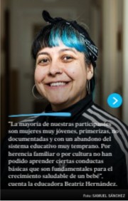 "La mayoría de nuestras participantes son mujeres muy jóvenes, primerizas y con un abandono del sistema educativo muy temprano. Por herencia familiar o por cultura no han podido aprender ciertas conductas básicas que son fundamentales para el crecimiento saludable de un bebé”, cuenta la educadora Beatriz Hernández.