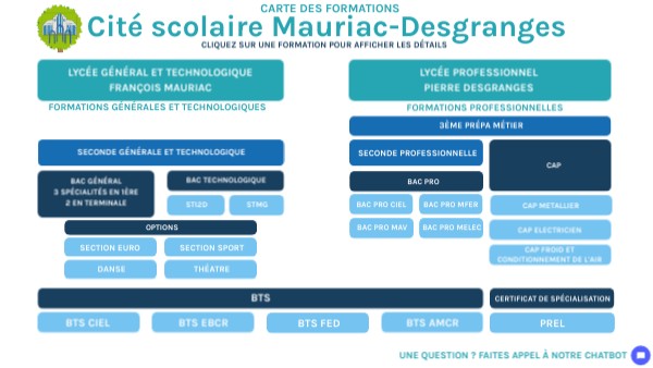 Carte des formations de la cité scolaire Mauriac Desgranges