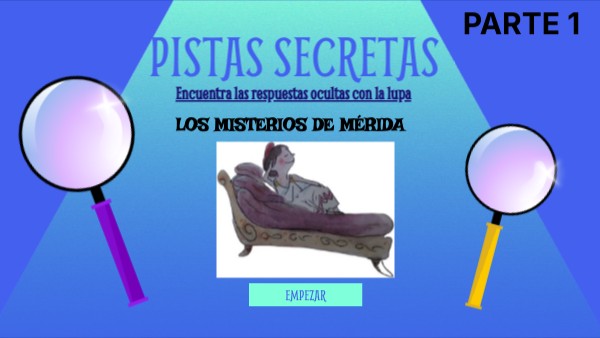 Después de leer el libro de Gigi Béret. los misterios de Mérida. Vas a convertirte en un detective resolviendo las preguntas. Debes arrastrar la lupa y encontrar la respuesta correcta . SUERTE