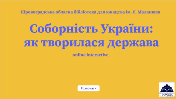 Інформаційний інтерактив до Дня Соборності України, (розроблено бібліотекарями КОБЮ ім. Є. Маланюка)
