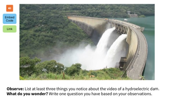 Observe: List at least three things you notice about the video of a hydroelectric dam. What do you wonder? Write one question you have based on your observations.