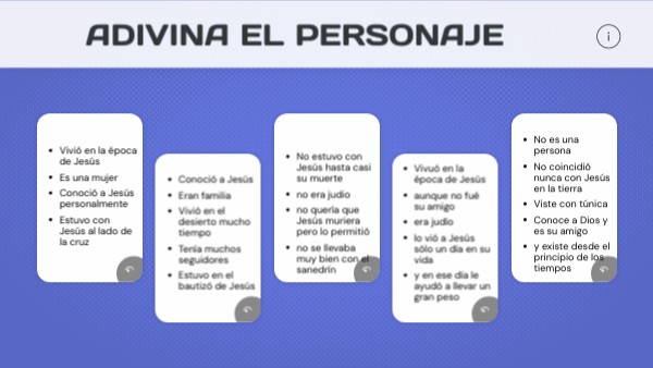 Trata de identificar el personaje antes de voltear la tarjeta. Si aciertas, haz clic en el signo ✔, y si te equivocas, selecciona ✖.