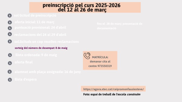 preinscripció pel curs 2025-2026 del 12 al 26 de març