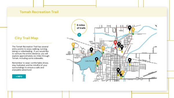 The Tomah Recreation Trail has several entry points to enjoy walking, running, biking or rollerblading. If you would like to venture the entire distance, you will explore approximately six miles through Tomah, including some sidewalks. Remember to wear comfortable shoes, stay hydrated, and be mindful of your surroundings to ensure a safe and enjoyable adventure!