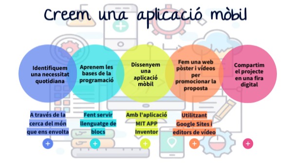 - Amb el que han après de disseny creen una aplicació per a mòbil, posant de la mà el disseny gràfic que permet l'aplicació i la programació de blocs
