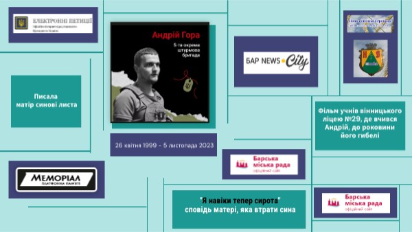 Фільм учнів вінницького ліцею №29, де вчився Андрій, до роковини його гибелі