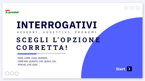 Quiz sui pronomi, avverbi e aggettivi interrogativi: quanto, quale, quando, chi, come, cosa, che, che cosa, perché, come mai