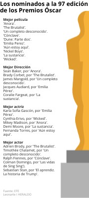 Los nominados a la 97 edición de los Premios Óscar
