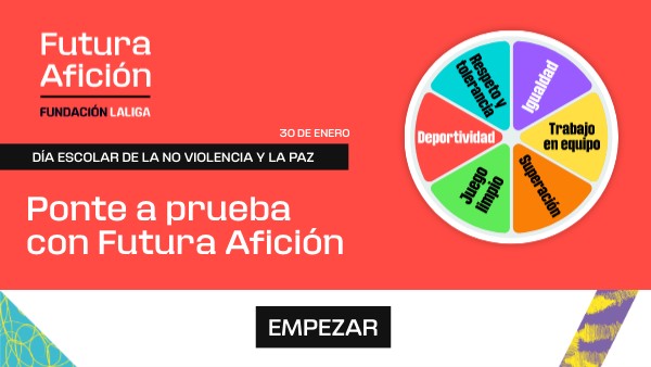 Desde Futura Afición creemos firmemente que los valores positivos del deporte pueden fomentarse e integrarse en el ámbito escolar para fomentar un entorno de paz y no violencia. ¿Sabrías completar este trivial con los valores positivos que trabaja Futura Afición? Descubre qué valor se esconde tras estas situaciones y desvela el mensaje sobre la no violencia y la paz.