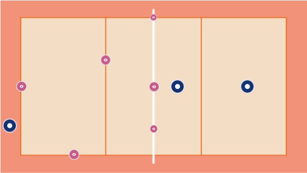 The front zone is the area between the center line and attack line on each side of the court. It spans 3 meters (9.8 feet) in depth and is where front-row players can attack, block, and set close to the net.