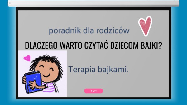 Bajki i baśnie mają niezwykłą moc- przenoszą dzieci do magicznego świata , a jednocześnie pomagają im zrozumieć rzeczywistość. Uczą pięknie mówić, ale przede wszystkim, jak wyrażać swoje zdanie, myśli i uczucia. Dlatego czytanie bajek dzieciom to inwestycja w ich przyszłość, ponieważ wpływa na rozwój językowy, poznawczy, emocjonalny i społeczny. Jednak żyjemy w nowoczesnym świecie, w którym na wyciągnięcie ręki mamy różne bajki i programy edukacyjne w telefonie, na tablecie czy telewizorze. Może wystarczy je włączyć dziecku, aby przeniosło się w ten magiczny świat? Czy "to głośne czytanie" nie jest stratą czasu? Czy bajki z ekranu mają taką samą moc jak czytane przez rodzica? Na to pytania postaram się odpowiedzieć w dzisiejszej prezentacji.