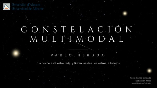 Rovira-Collado, J. (4 de octubre de 2023). Imágenes elementales de Pablo Neruda: análisis didáctico de expansiones poéticas transmedia [Sesión de conferencia]. V Seminario Internacional. La literatura hispanoamericana en el aula, Centro de Estudios Literarios Iberoamericanos Mario Benedetti, Alicante.