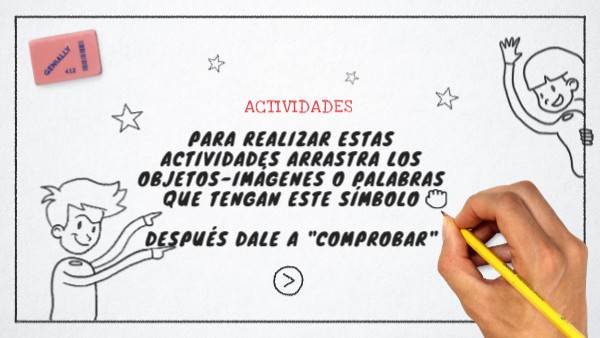 Para realizar estas actividades arrastra los objetos-imágenes o palabras que tENGAN este símbolodespués dale a "comprobar"
